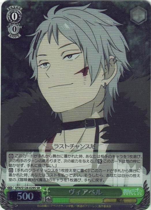 【自】[手札のクライマックスを1枚控え室に置く] このカードが手札から舞台に置かれた時、あなたはコストを払ってよい。そうしたら、あなたは自分の控え室の、《冒険者》か《魔法》のキャラを1枚選び、手札に戻す。