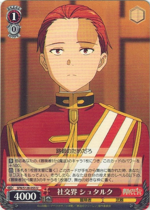 【自】[手札を1枚控え室に置く] このカードが手札から舞台に置かれた時、あなたはコストを払ってよい。そうしたら、あなたは自分の控え室のレベル0以下の、《冒険者》か《魔法》のキャラを1枚選び、舞台の好きな枠に置く。