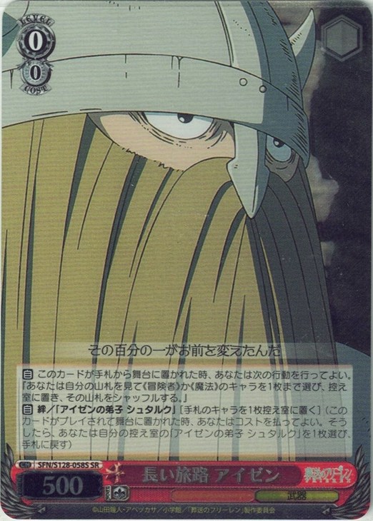 【自】 絆/「アイゼンの弟子 シュタルク」 [手札のキャラを1枚控え室に置く] (このカードがプレイされて舞台に置かれた時、あなたはコストを払ってよい。そうしたら、あなたは自分の控え室の「アイゼンの弟子 シュタルク」を1枚選び、手札に戻す)