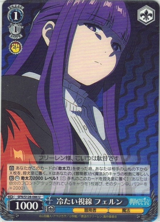 【自】 あなたがこのカードの『助太刀』を使った時、あなたは相手の山札の下からX枚を、控え室に置く。Xはあなたの、《冒険者》か《魔法》のキャラの枚数に等しい。