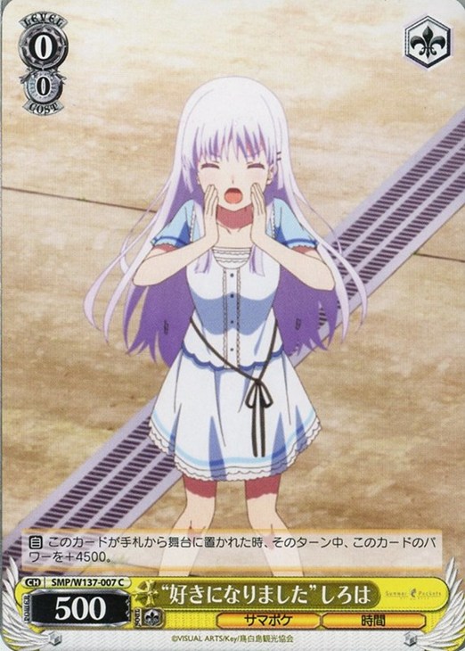 - 【自】 このカードが手札から舞台に置かれた時、そのターン中、このカードのパワーを+4500。