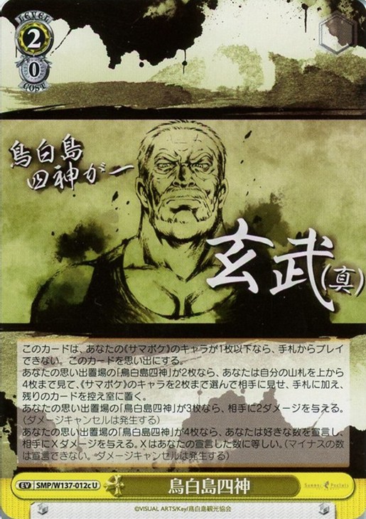あなたの思い出置場の「鳥白島四神」が3枚なら、相手に2ダメージを与える。(ダメージキャンセルは発生する)