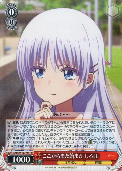 【自】 継承 他のあなたのキャラが手札から舞台に置かれた時、そのキャラの下にマーカーがないなら、あなたはこのカードの下のマーカー1枚までとこのカードを選び、その舞台に置かれたキャラの下にマーカーとして好きな順番で表向きに置いてよい。そうしたら、残りのマーカーを控え室に置く。