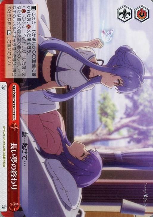 (スタンバイ:このカードがトリガーした時、あなたは自分の控え室の自分のレベル+1以下のレベルのキャラを1枚選び、舞台の好きな枠に【レスト】して置いてよい)