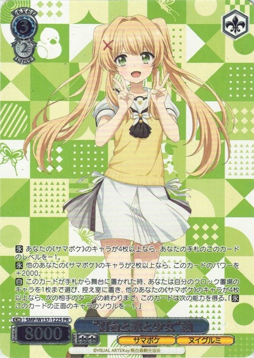 【永】 他のあなたの《サマポケ》のキャラが2枚以上なら、このカードのパワーを+2000。