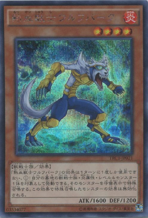 - 「熱血獣士ウルフバーク」の効果は1ターンに1度しか使用できない。 (1):自分の墓地の獣戦士族・炎属性・レベル4モンスター1体を対象として発動できる。 そのモンスターを守備表示で特殊召喚する。 この効果で特殊召喚したモンスターの効果は無効化される。