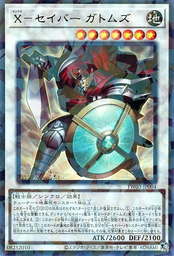 このカード名の①②③の効果はそれぞれ1ターンに1度しか使用できない。①:このカードがS召喚した場合に発動できる。デッキから「セイバー」魔法・罠カードか「ガトムズ」魔法・罠カード1枚を手札に加える。②:このカードが相手に戦闘ダメージを与えた時に発動できる。相手の手札をランダムに1枚捨てる。③:このカードが墓地に存在する状態で、自分の「X-セイバー」モンスターが攻撃対象に選択された時に発動できる。このカードを特殊召喚する。その後、攻撃対象をこのカードに移し替える。