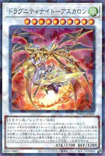 このカード名の②の効果は1ターンに1度しか使用できない。①:自分の墓地から「ドラグニティ」モンスター1体を除外し、相手フィールドのモンスター1体を対象として発動できる。そのモンスターを除外する。②:S召喚したこのカードが相手によって破壊された場合に発動できる。EXデッキから攻撃力3000以下の「ドラグニティ」Sモンスター1体をS召喚扱いで特殊召喚する。