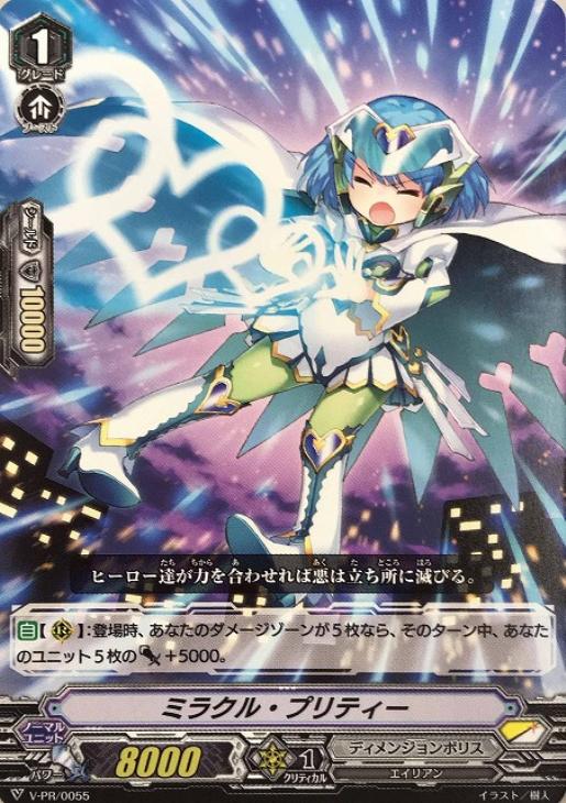 - 【自】【(R)】:登場時、あなたのダメージゾーンが5枚なら、そのターン中、あなたのユニット5枚のパワー+5000。