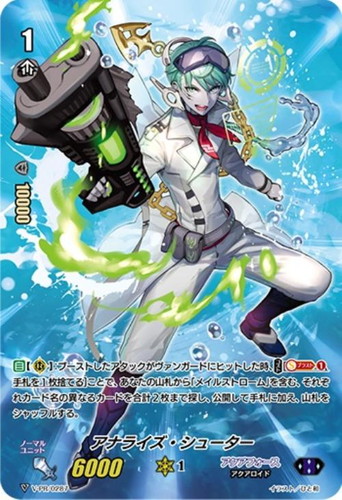 - 【自】【(R)】:ブーストしたアタックがヴァンガードにヒットした時、【コスト】[【ソウルブラスト】(1),手札を1枚捨てる]ことで、あなたの山札から「メイルストローム」を含む、それぞれカード名の異なるカードを合計2枚まで探し、公開して手札に加え、山札をシャッフルする。