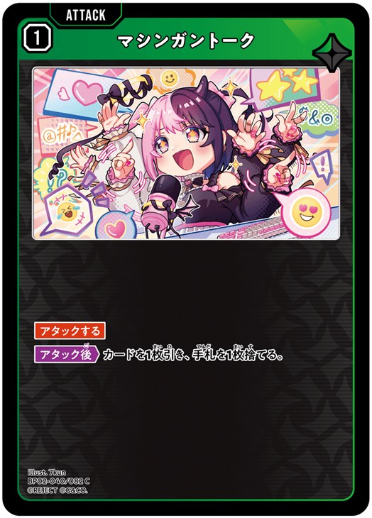 [アタック後]カードを1枚引き、手札を1枚捨てる。