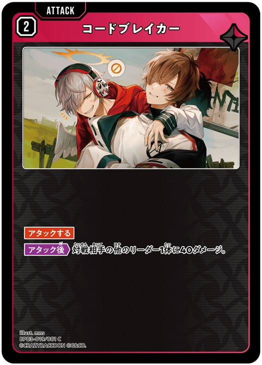 【アタック後】対戦相手の他のリーダー1体に40ダメージ。