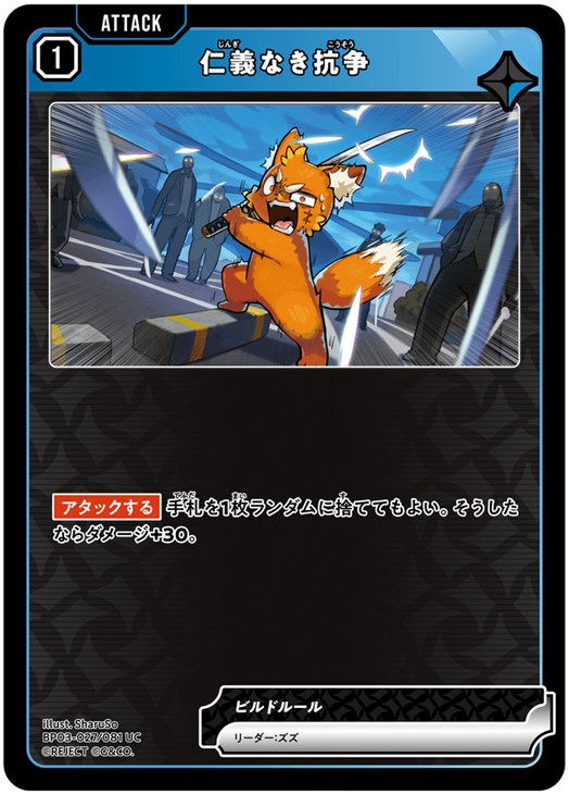 【アタックする】手札を1枚ランダムに捨ててもよい。そうしたならダメージ+30。