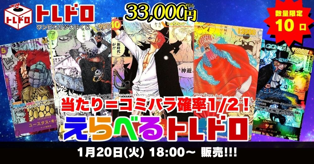 【ワンピ】バックナンバーまとめ ワンピーストレドロの過去の発売リストをまとめています! ※記載の商品は全て発売日を過ぎたものです。あたりのチェック等にご利用ください。 ※ページの負荷が大きいため一定期間が過ぎたものは一覧から消去しています。掲載のないものをご覧になりたい場合はお手数ですがお問い合わせください。 ■1/13えらべる ■1/14 ■1/15 ■1/16えらべる ■1/20えらべる ■1/24